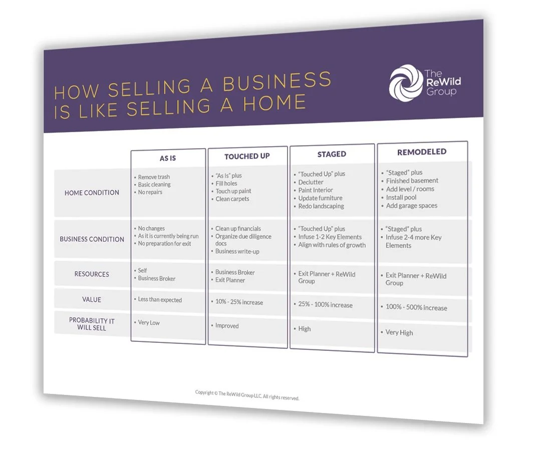 Most people have experience with either buying or selling a home. We find that the parallel to selling a business is helpful in understanding how and where Organizational ReWilding fits into the process.